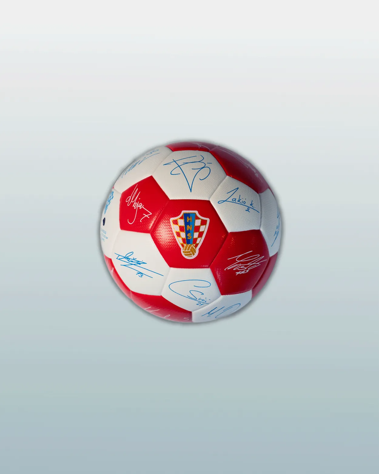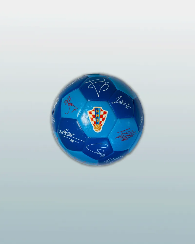 Izrađena od kvalitetne eko kože i promjera 15,4 cm, mini lopta jednako je prikladna za igru, tehničke vježbe ili kao dekorativni detalj. Klasičan dizajn s 32 panela u prepoznatljivom crveno-bijelom uzorku dodatno je ispunjen potpisima aktualnih A reprezentativaca, čime svaka lopta postaje jedinstven komad nogometne priče i poseban suvenir za sve ljubitelje Vatrenih.